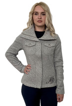 Женская куртка пиджак Harley-Davidson – высокий ворот, ровный серый цвет, брендо