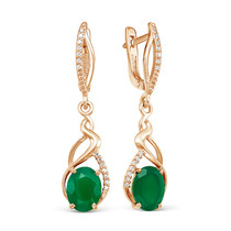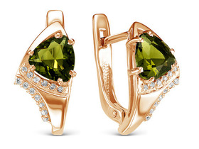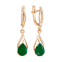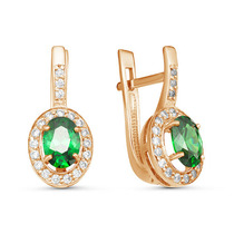 Позолоченные серьги с фианитами зеленого цвета 001 - п