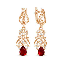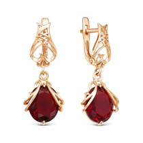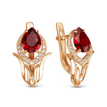 Позолоченные серьги с фианитами красного цвета 812 - п