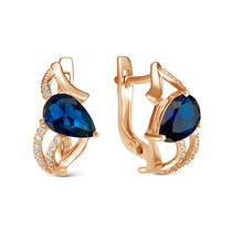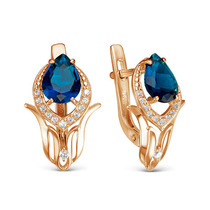 Позолоченные серьги с фианитами синего цвета - 812 - п