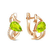 Позолоченные серьги с фианитами оливкового цвета 828 - п