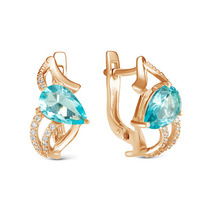 Позолоченные серьги с фианитами голубого цвета 821 - п
