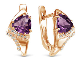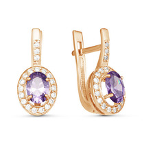 Позолоченные серьги с фианитами фиолетового цвета 001 - п