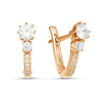Позолоченные серьги с бесцветными фианитами 064 - п