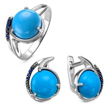 Тип вставки (камня): бирюза, фианиты; Проба: 925; Цвет вставки на фото: голубой; Металл: серебро; Цвет вставок: синий; Вес: 5.3 г— Описание у На сайте поставщика