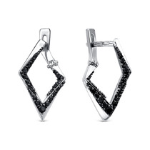 Серебряные серьги с черными фианитами - 1394