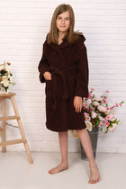 Халат подростковый махровый "Элит" с капюшоном, цвет: 915-Горький шоколад, р. 14