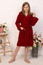 Халат подростковый махровый "Элит" с капюшоном, цвет: 945-Бордовый, р. 140/146