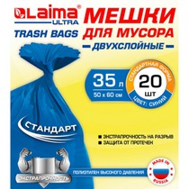 Мешки для мусора LAIMA "ULTRA" 35 л синие 20 шт. особо прочные, ПВД 20 мкм, 50х6