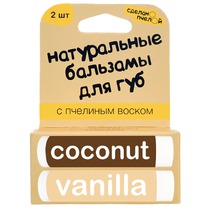 Набор "Coconut & Vanilla" из 2-х популярных 100% натуральных бальзамов для губ с пчелиным воском
