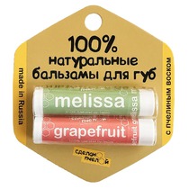 Набор "grapefruit & melissa" из 2-х популярных 100% натуральных бальзамов для губ с пчелиным воском