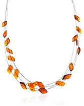Лёгкое воздушное колье на четырех струнах с натуральным коньячным янтарём