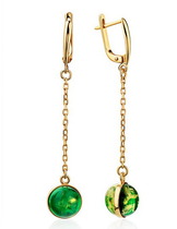 Яркие серьги с янтарём изумрудного цвета и марказитами