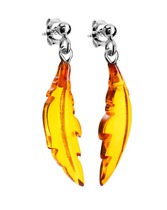 Легкие янтарные серьги-гвоздики «Пёрышко»
