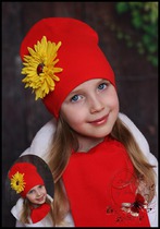 Удл. шапка с желтой астрой (красная)