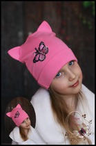 Шапка-кошка с бабочкой Монарх (розовая)