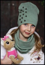 Удлинённая шапка с бусинами «Орнелла»(оливка)