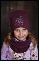 Удл. шапка с аппликацией из страз «Снежиночка» (слива)