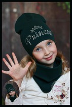 Удл. шапка с аппликацией из страз «Принцесса» (изумруд)