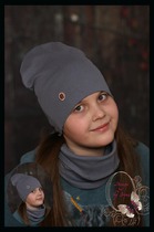 Удлинённая шапка для девочки «CОЛНЫШКО» (антрацит)