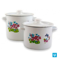 набор 20 белый Фиалка   кастрюли цилиндр.: 3,5л;  5,5л