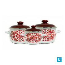 набор 31 белый Айша, крышка вишнёвая   кастрюли сфер. с н/об.: 2л; 3л и 4л