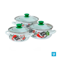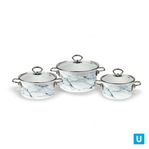 набор Белый Мрамор-1-Элит (белая), арт.(кастрюли цил. с пл. дном 1,9л,2,5л,3,7л)