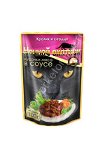 Корм для кошек Ночной охотник с кроликом и сердцем в соусе 100г