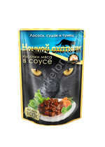 Корм для кошек Ночной охотник с лососем, судаком и тунцом в соусе 100г