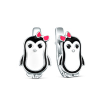 Серьги детские из серебра с эмалью и фианитами родированные - Пингвины 925 пробы