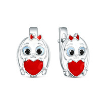 Серьги детские из серебра с эмалью и фианитами родированные 925 пробы ст-00р216