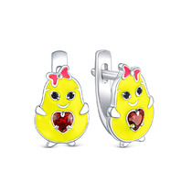 Серьги детские из серебра с эмалью и фианитами родированные - Цыплята 925 пробы