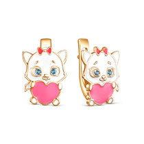 Серьги детские из золочёного серебра с эмалью и фианитами - Кошечки 925 пробы 23