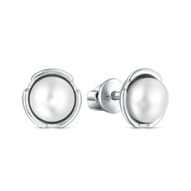 Серьги-пусеты из серебра с культивированным жемчугом родированные 925 пробы 04-7
