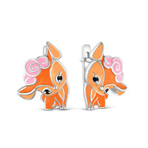 Серьги детские из серебра с эмалью и фианитами родированные - Зайки 925 пробы 23