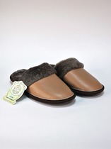 Тапочки из кожи и меха с опушкой