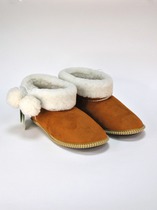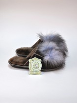 69 - Тапочки из кожи и меха с бубоном Коричневые