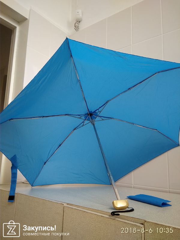 Получила уже второй зонт из этой закупки. Всем довольна! Решила в этот раз взять зонтик поменьше длинной, но с большим куполом и полностью механический. Сам зон очень понравился. Длина зонта 19 см, а купол 103 см....он просто огромный) Конечно, уже не привычно открывать и закрывать зонт в ручную....еле открыла его в первый раз))...но буду привыкать. Надеюсь, что прослужит долго!