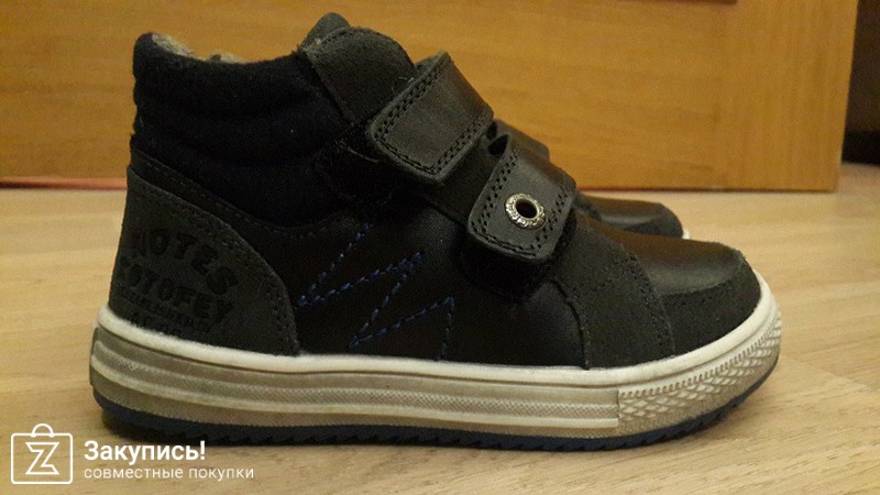 25 размер. По стельке 16,5см. Нога у ребенка 15,5см, внешне видно, что обувь не пропорционально туловищу))) но внутри запас не такой уж и большой кажется. Запаха нет. Упакованы были в фирменную коробку Котофея. Шнурок-обманка, это резинка. На сайте поставщика они темнее, мне попались посветлее. Стелька очень интересная: и дышит, и впитывает))) еще и каркасная.