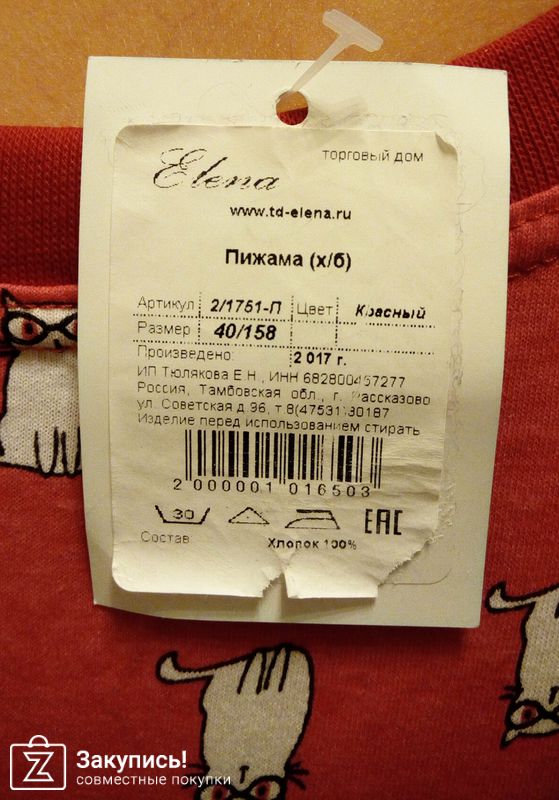 Пижама Артикул 2/1751-П оказалась маломеркой. Размер 40/158 - штаны и рукава короткие, а после стирки, наверное, еще подсядет после стирки. Ткань - кулирка - тоненькая, качество \"не очень\", на троечку. Новая пижама сильно пахнет краской, обычно такие ткани сильно линяют и после первой стирки превращаются в тряпочку.