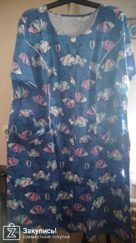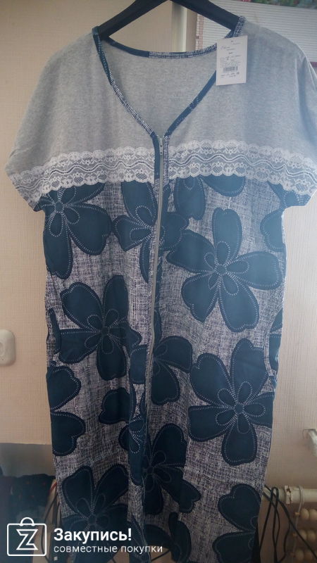 покупала в подарок, отправила в другой город. Рассмотрела перед отправкой. Сшито хорошо, красивая модель, нежное кружево на кокетке. Рукав спущенный, как хотелось. Размер покупала 54, на молнии. Халатик понравился, удобный, легкий. Полностью соответствует описанию и фото на сайте. Организатору спасибо!