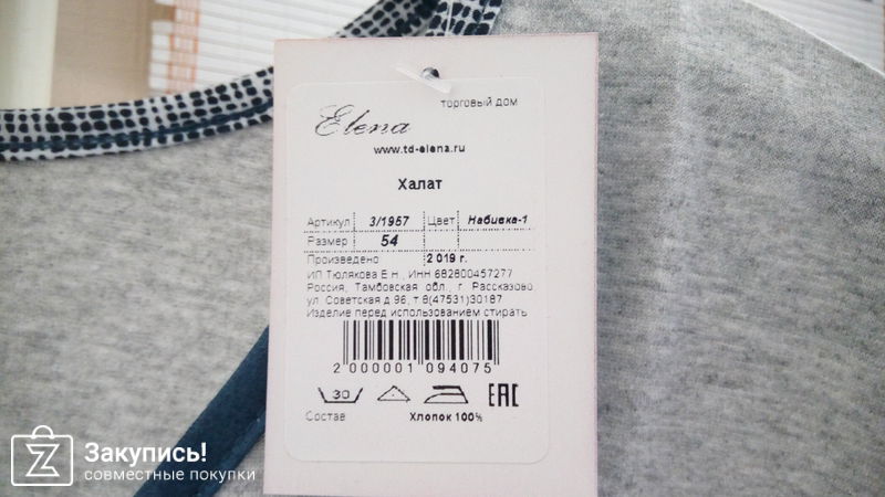 Халат Артикул 3/1904 покупала бабушке в подарок большой размер 64, чтобы было комфортно и с учетом, что кулирка часто дает сильную усадку.