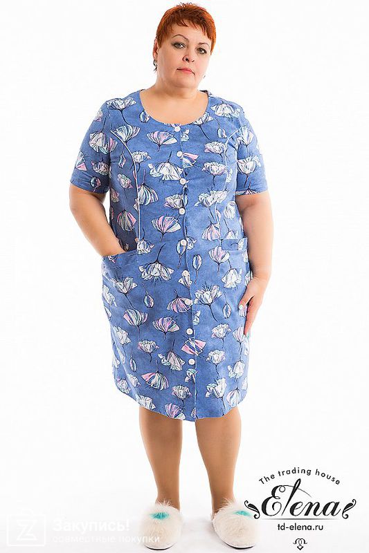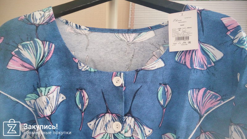 Сшито аккуратно, размеру соответствует, расцветка не яркая, нежная, все точно как на фото на сайте https://td-elena.ru/catalog/zhenskaya_odezhda/khalaty_1/khalat_5.html.