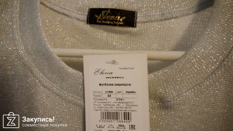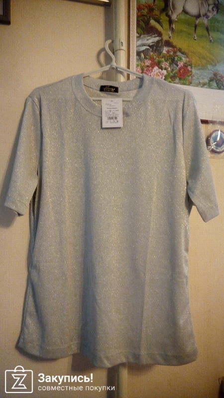 Футболка Артикул 3/1896 из кашкорсе (состав хлопок 95% Лайкра 5%). Немного колется металлизированная нить, я бы сказала, что в составе больше синтетики, чем хлопка. Но смотрится отлично. Хотя немаленький размер 54, но не полнит, покупала побольше, чтобы не было в обтяг. Выглядит строго и нарядно. Покупала специально под костюм. Размеру и описанию полностью соответствует. Покупкой вполне довольна