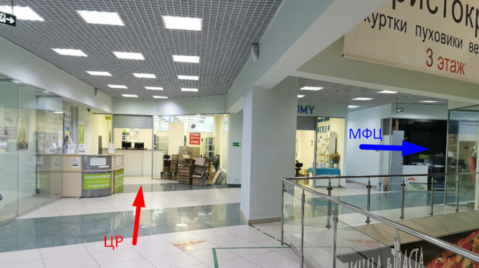 Тот же этаж (3-й), ближе к МФЦ, от лифта прямо по коридору и упираетесь в ЦР)