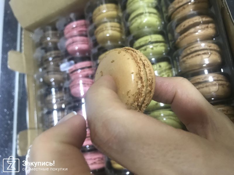 Мускат-корица, фисташка, хрустящая карамель, малина, шоколад. Заказывая набор макарун заранее не знаешь какой именно набор тебе придет, но эта лотерея) того стоит! Очень вкусные макаруны! Особенно удивил и порадовал вкус корица-мускат.