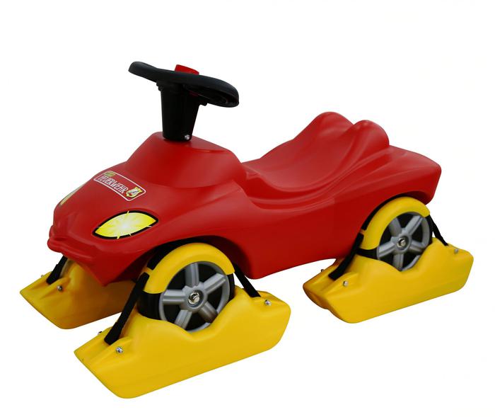 1) Многофункциональный снегоход каталка-автомобиль "Пожарная команда" со звуковым сигналом, салазки убираются, получается просто машинка-толокар. 1500р. НОВАЯ, в коробке!