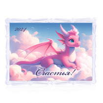 Магнит большой акриловый в рамочке. Дракончик розовый. Счастья!