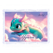 Магнит большой акриловый в рамочке. Дракончик зеленый. Удачи!