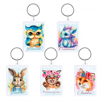 Набор милых новогодних акриловых брелоков с пожеланием 5 шт.